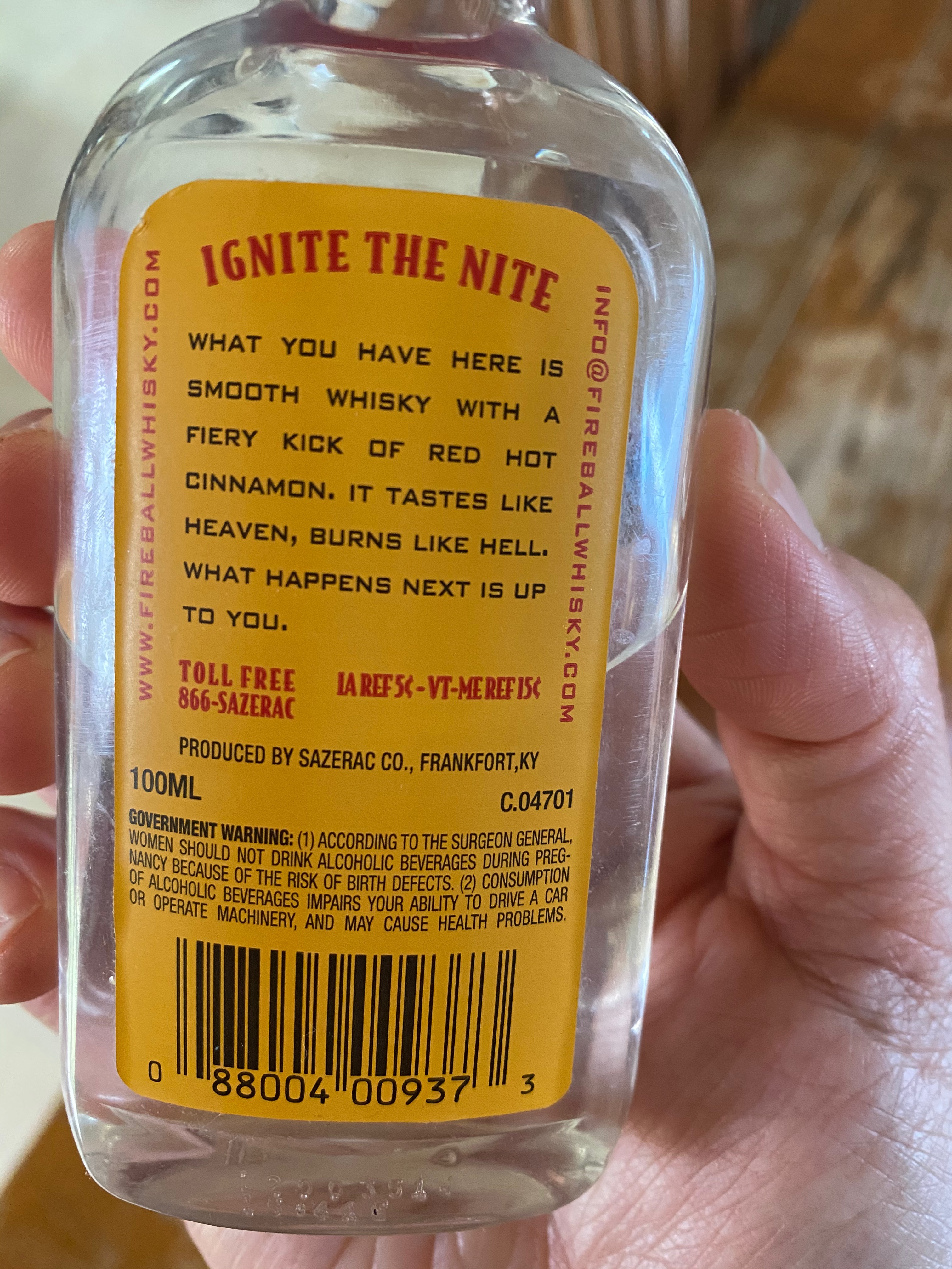 Confirmed. I burst out laughing. He scratched the devil off the front. But why would he go out of his way to get a small bottle of Fireball instead of regular aftershave? Maybe he does take a little swig.