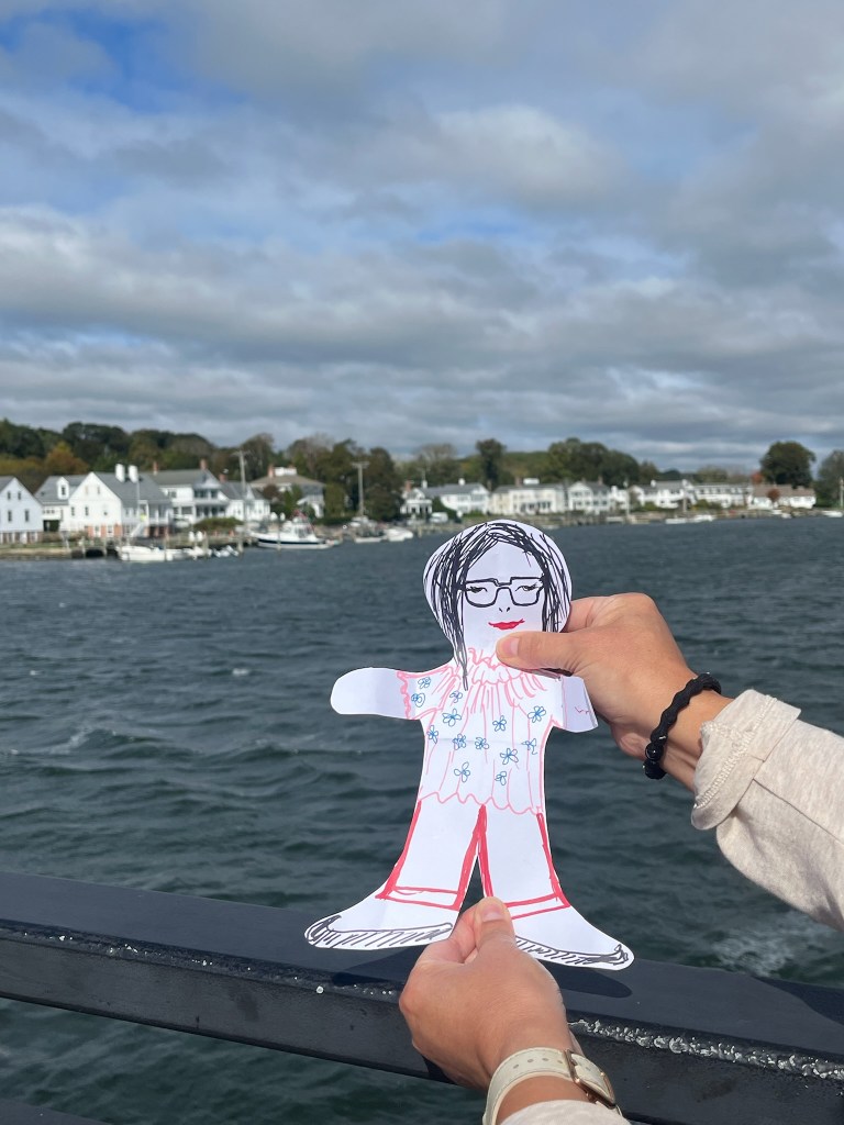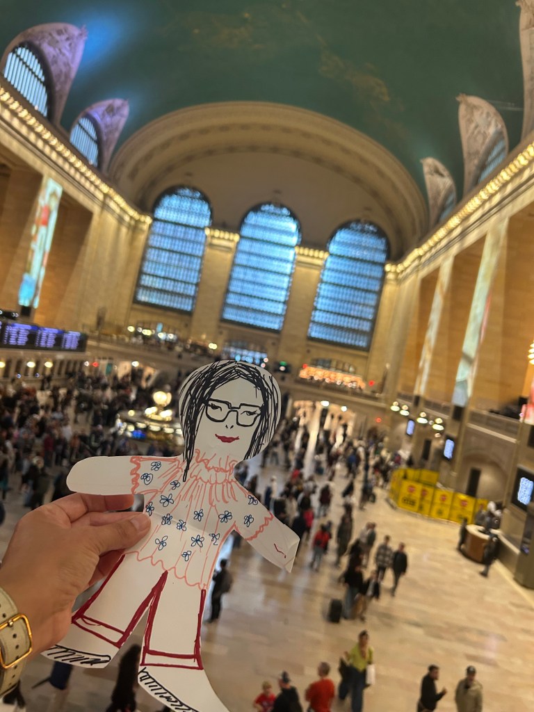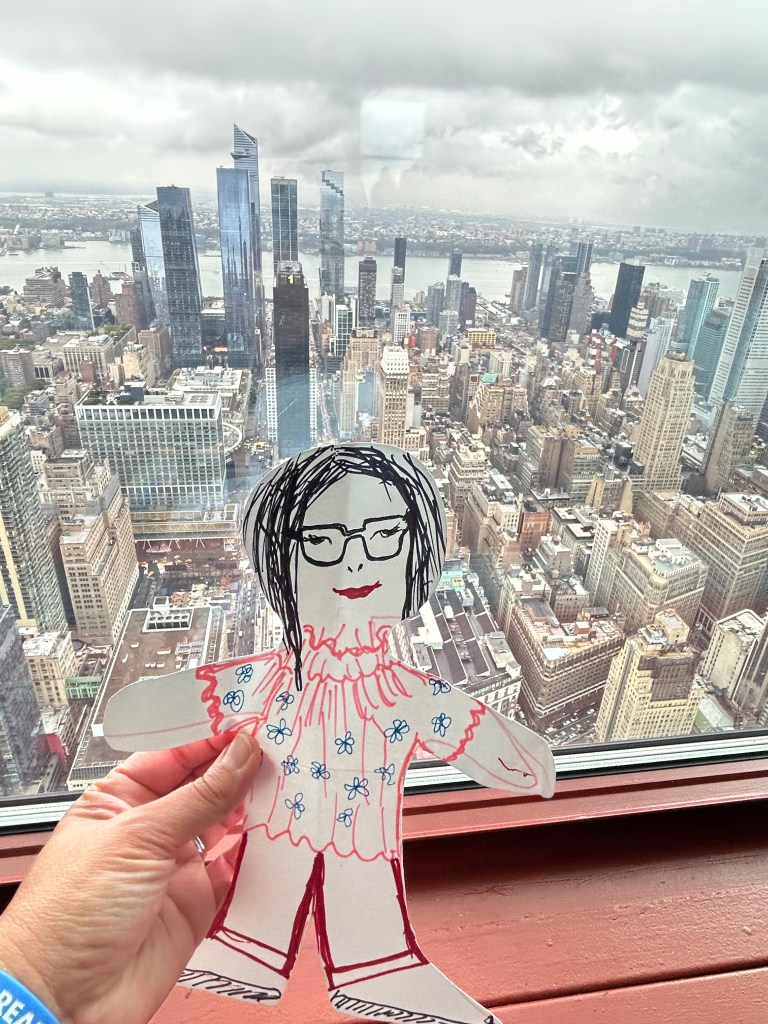 One of the last things I did for the first time, aside from riding a train to New York City, was making a paper doll. One of my sisters, we call her Spidy, wasn’t able to join us on this trip. Disappointed, she made a suggestion that could work.