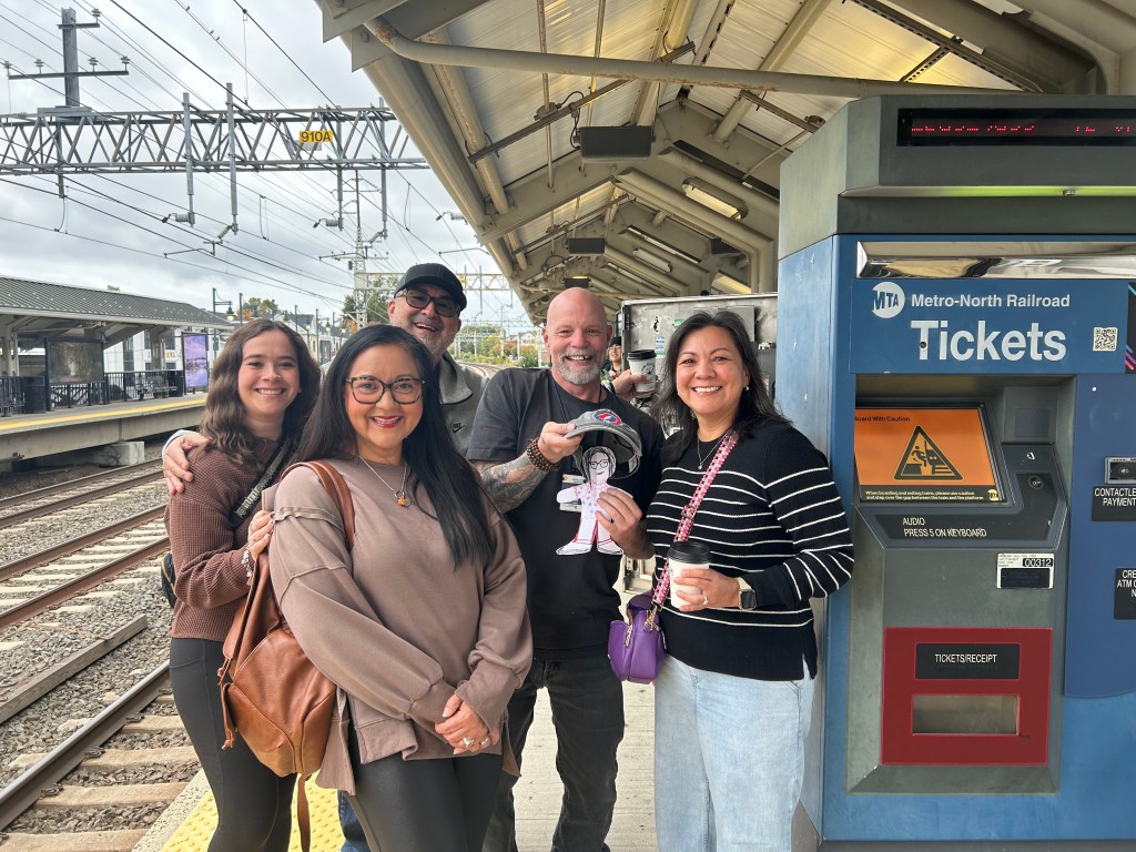 Join us, she did. At the train station, Danny, our funcle asked a guy named Eddie about tickets. He tinkered on a machine others were grateful he was fixing while he gave us travel tips. In Texas, we pretty much only drive everywhere. We chatted about visiting places that aren’t conducive to urban hiking and public transportation. Great guy. Once I pulled Flat Spidy out of my bag, he about lost it.