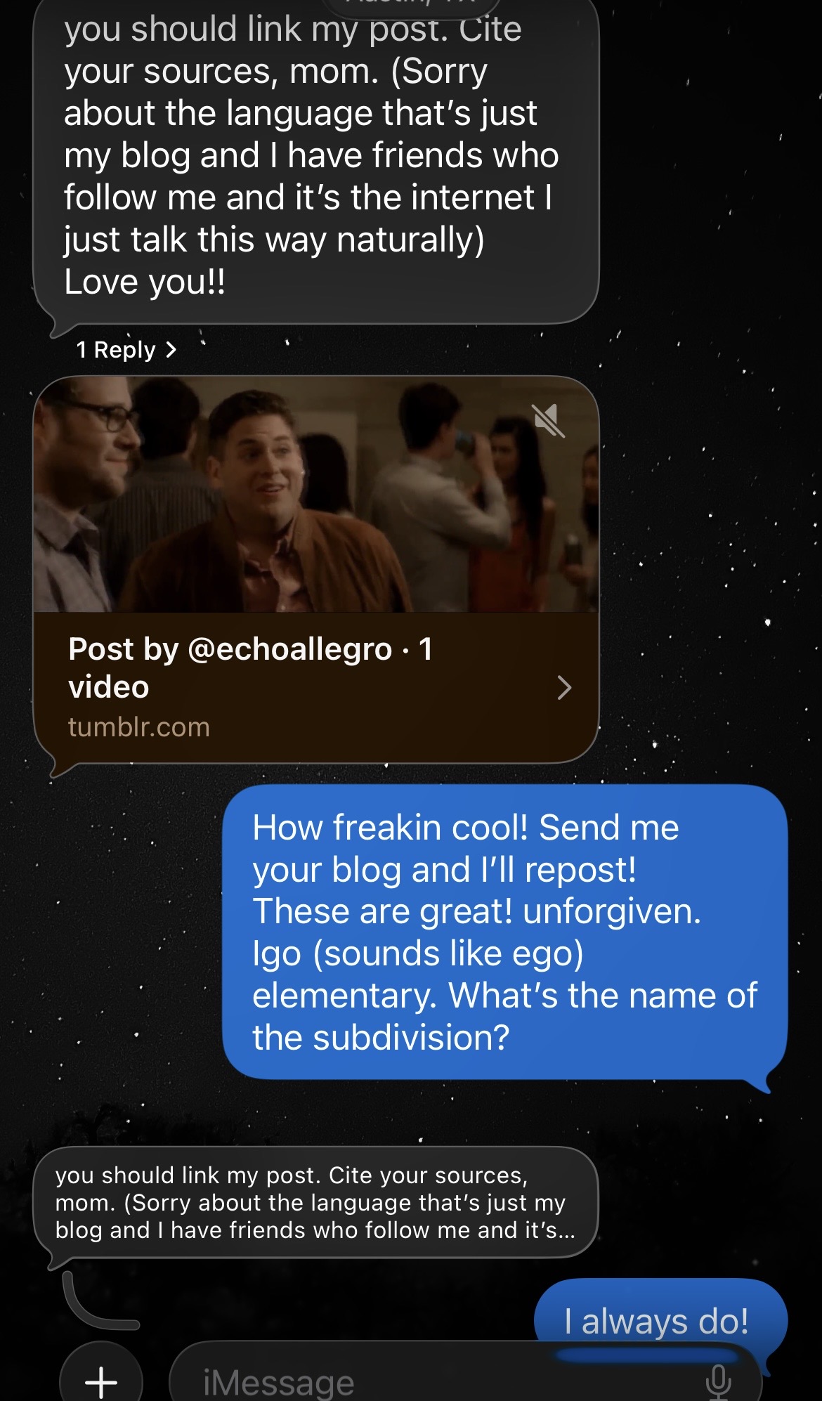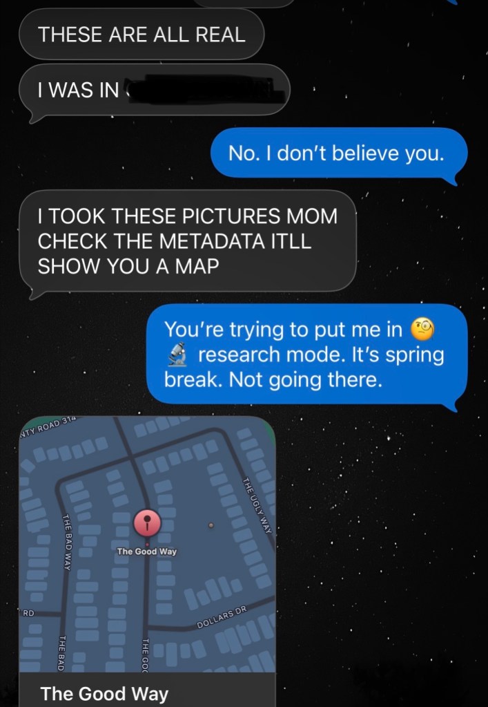 A little before I settled in for writing, running through a mental of list of zero topics, one dropped into my phone. E, my 23 year old, started the conversation. He loves pulling pranks on me, making it difficult to know whether he’s serious or not.