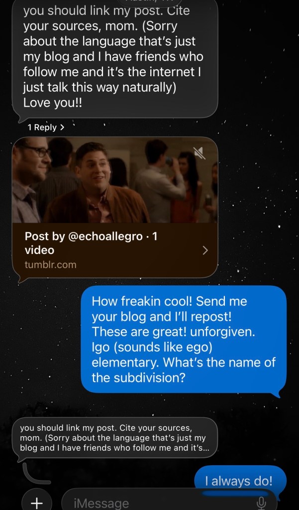 My internet wasn’t connecting well. It happens on cloudy days on top of the fact that the kids’ devices and non-allowed phones suck up bandwidth. I reply anyway hoping the end of the day means later than the end of the workday.
